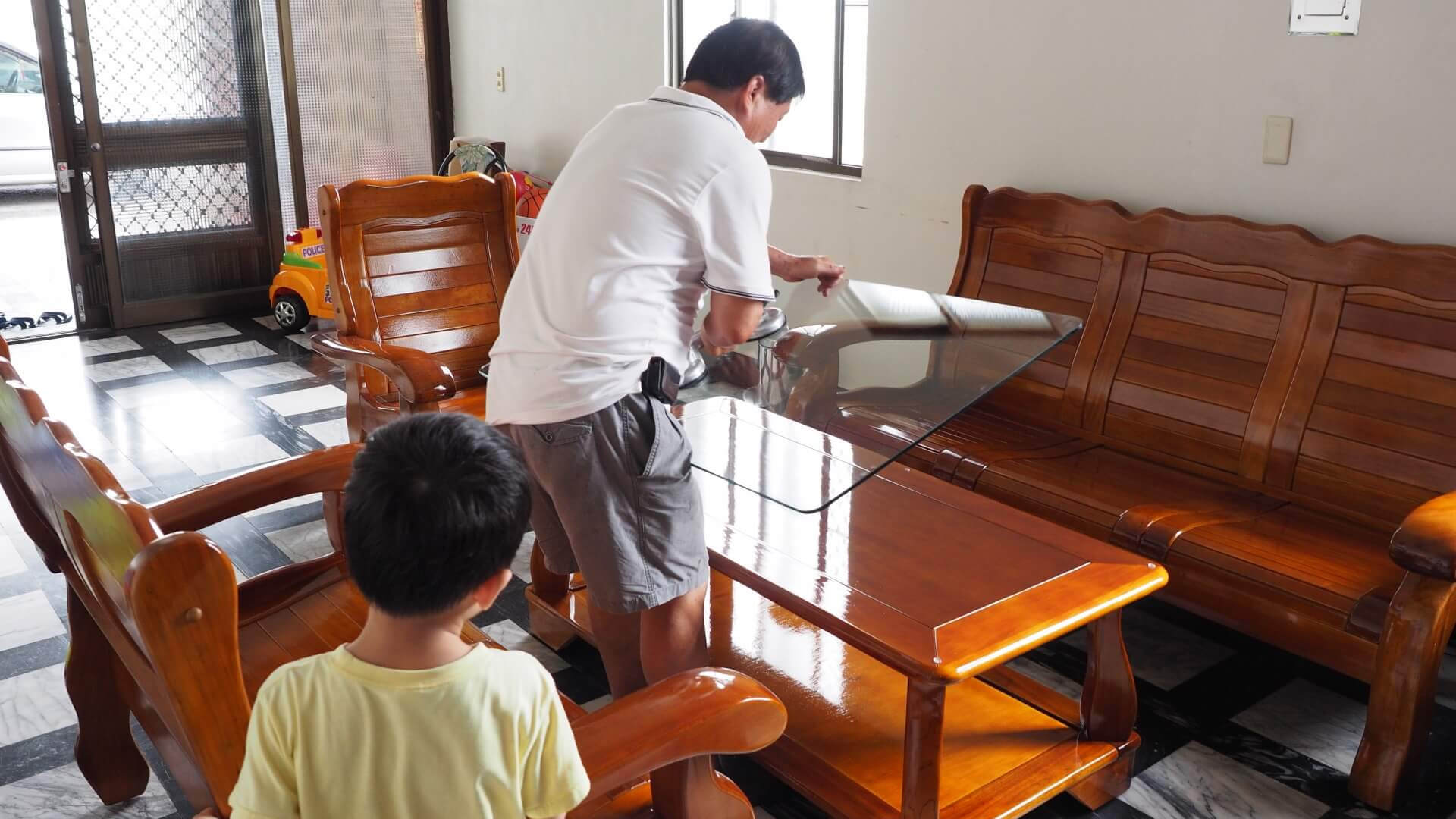 本篇記錄我請玻璃行訂製客廳茶几用的強化玻璃墊。 上禮拜買了一組實木的木組椅,而當時在傢俱行選購時,忘了請玻璃行一起訂製茶几用的玻璃墊,後來才請玻璃行老闆來家裡丈量茶几的尺寸,所以玻璃墊又等了一週才放上去。 其實最好的做法應該是在選購傢俱時就一起訂製玻璃墊,讓整組茶几連同玻璃墊一起送來家裡,避免茶几送到家裡之後,桌面還沒放上玻璃墊就被刮傷了,尤其是家裡有小朋友的人特別容易這樣,我們家阿玄前兩天就在大茶几上面畫水彩畫,還好水彩擦掉以後沒有留下痕跡。 ...