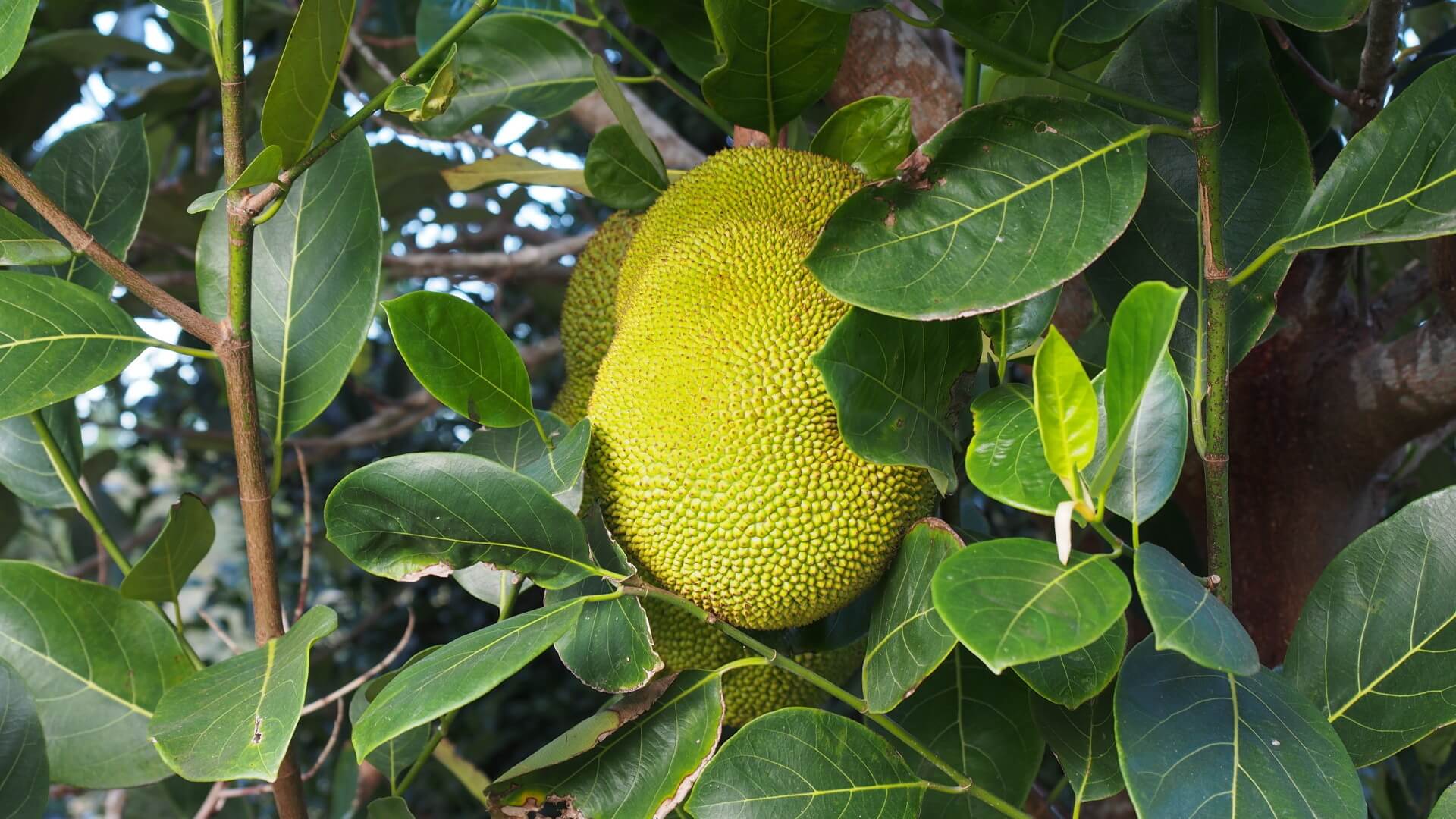 這是自己家種的波羅蜜樹,今年結了三大顆果實,拍照紀錄一下。