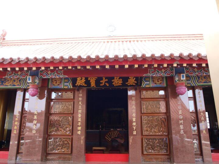 新營太子宮頂樓的無極大寶殿中供奉 原始玄玄上人,亦即 無生老(母),左右分別為武法律主 文衡聖帝(關)與文法律主 孚佑聖帝(呂),入殿內必須脫鞋並保持肅靜。