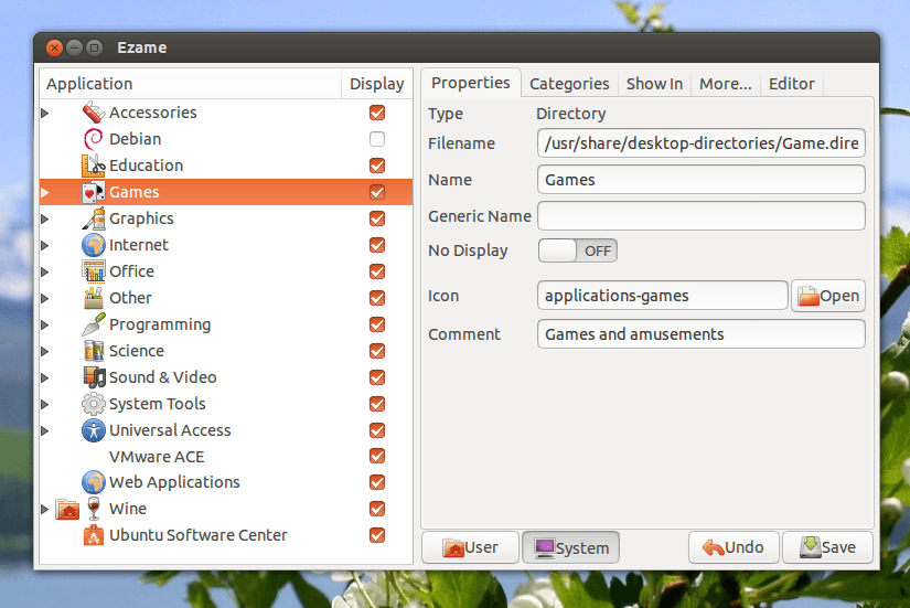 Ezame 是一個可以編輯 Ubuntu Unity 桌面選單的工具,亦可用於其他的桌面環境。