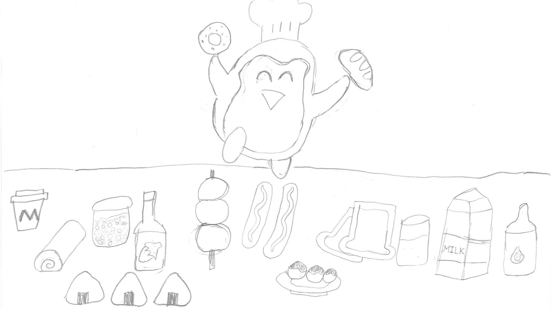 這禮拜去佳湘麵包買了幾個麵包與蛋糕,阿玄看到塑膠袋上面的小企鵝,就照著畫了幾張圖畫。